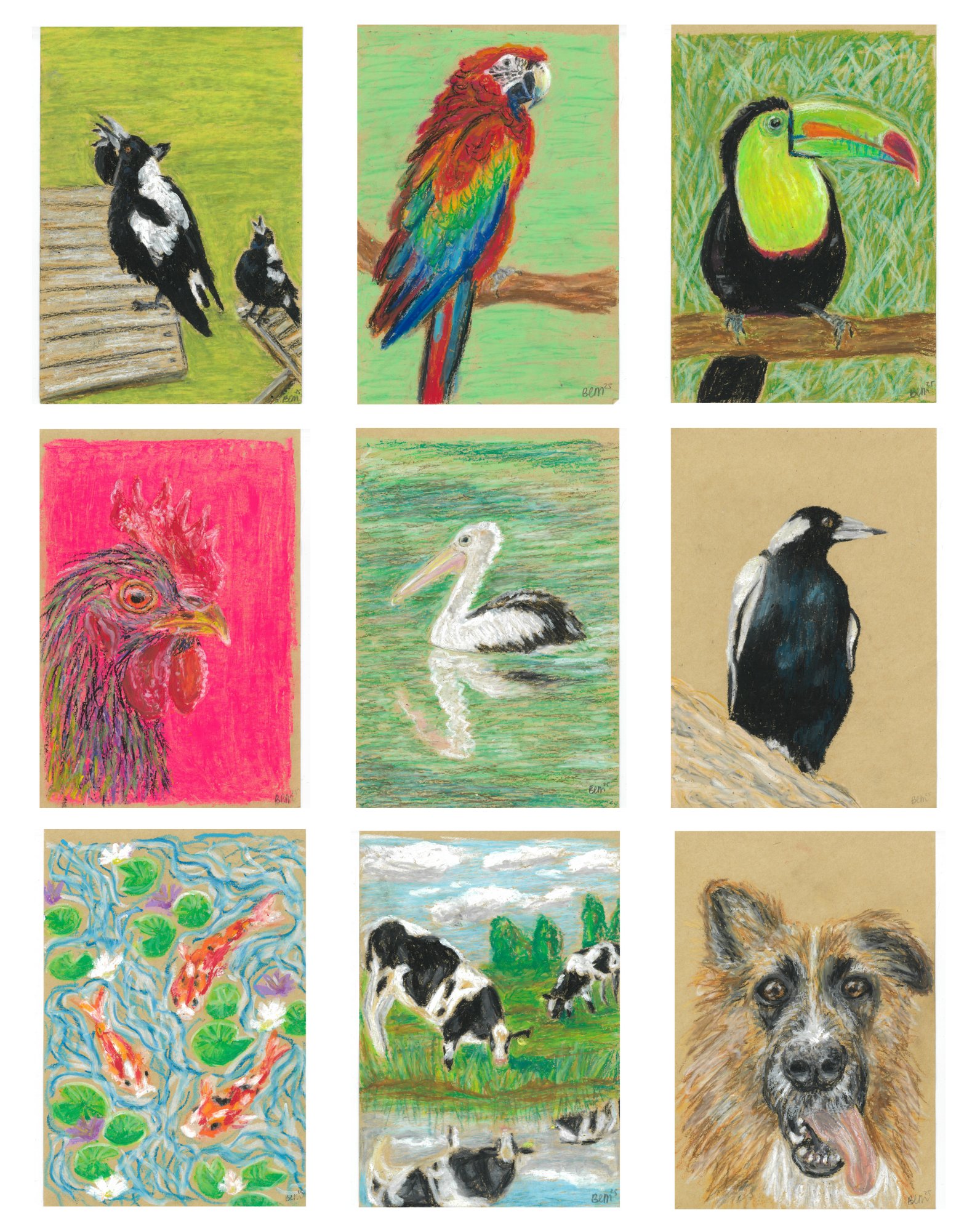 Another assortment of animal oil pastel drawings, originals and prints (a5, 250gsm) available